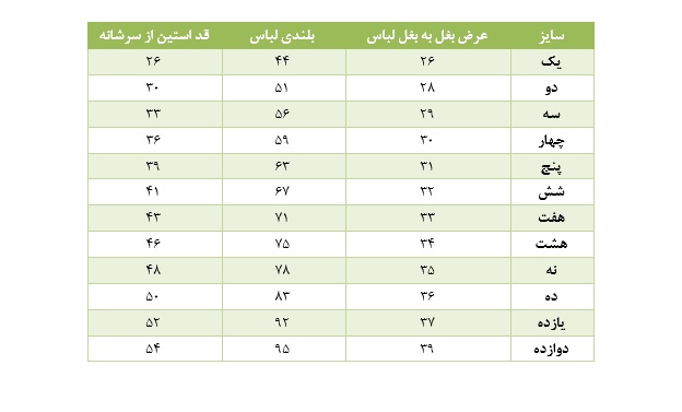 ✅️ جهت تعیین سایز، عددهای نوشته شده در جدول را با یکی از لباس های دخترتون مقایسه و سایز مناسب رو انتخاب بفرمایید