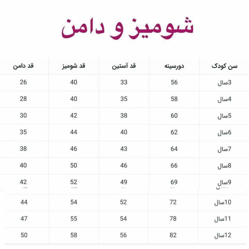 ✅️ جهت تعیین سایز، سانت های نوشته شده در جدول را با لباس گل دخترتون مقایسه کنید.( دورسینه نوشته شده در جدول، دور سینه لباس است)