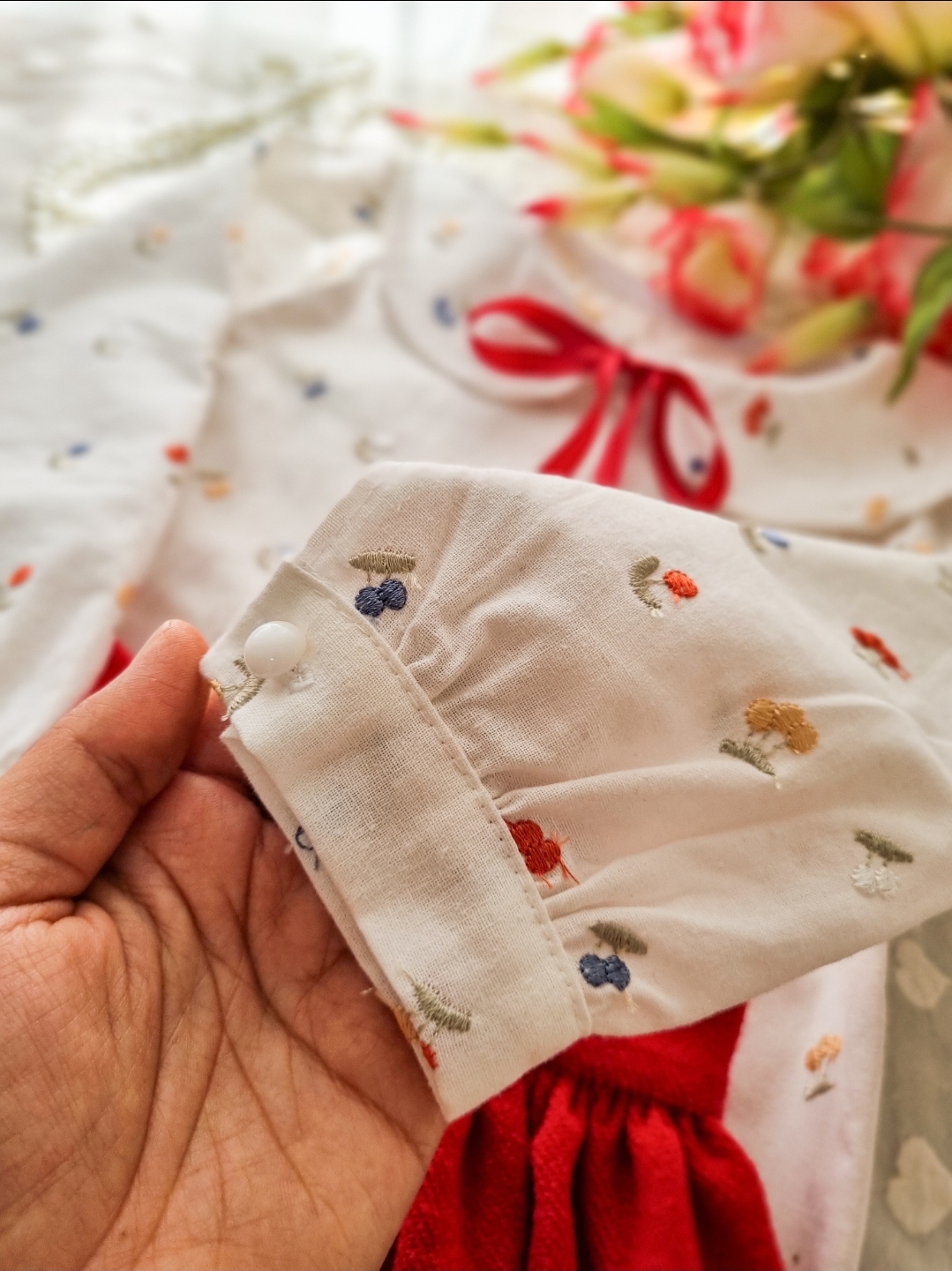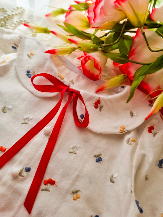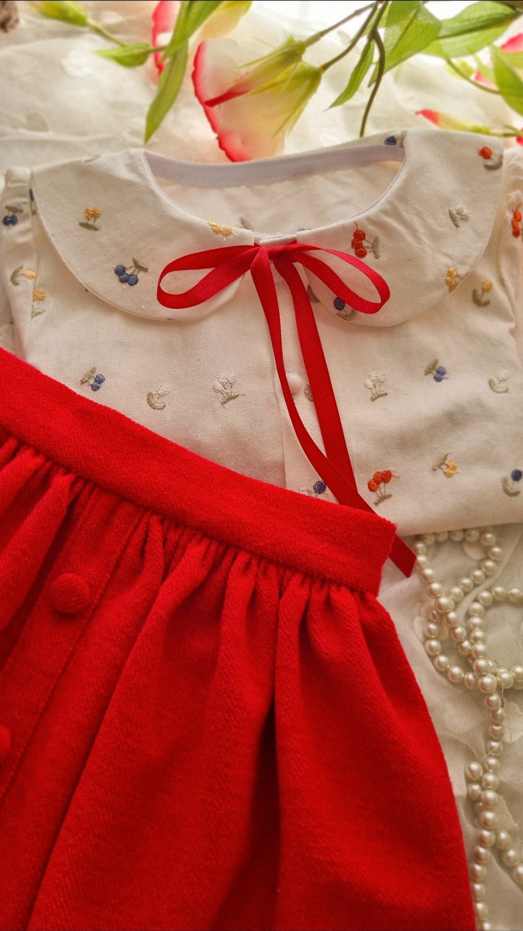 شومیز لینن گلدوزی شده و دامن مخمل پشمیکجراه