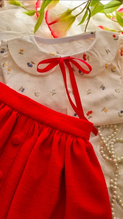 جنس: شومیز لینن گلدوزی شده و دامن مخمل پشمیکجراه