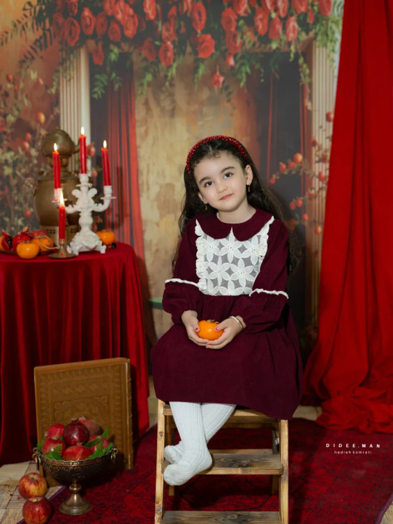 پیراهن دخترانه مخمل کبریتی ماهگُل