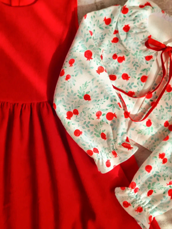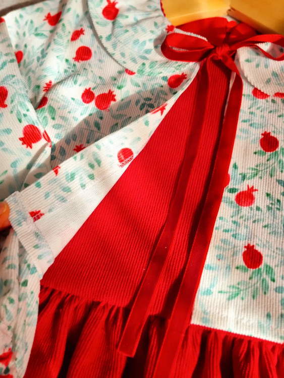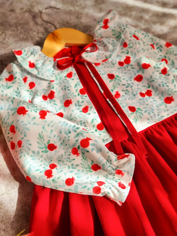 پیراهن خیلی خاص با طرح انار خوشکل و ملیح. جنس سارافون و کت هر دو مخمل کبریتی .سارافون آستر کشی شده.