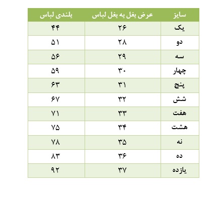 ✅️ لطفا سانت های نوشته رو با یکی از لباس های دخترتون مقایسه و سایز درست رو انتخاب بفرمایید: